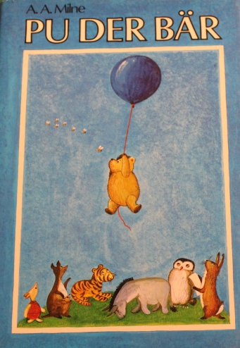 Vorderes Einbandbild in A. A. Milne: Pu, der Bär Ausgabe von 1983 im Cecilie Dressler Verlag; siehe auf unserer Seite: Ausgaben von A. A. Milne ... |