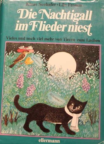 Vorderes Einbandbild in Klaus Seehafer: Die Nachtigall im Flieder niest Ausgabe von 1980 im Ellermann Verlag; siehe auf unserer Seite: Fabeln und Tiermärchen ... |