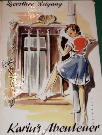 Vorderes Einbandbild in Dorothee Weigang: Karin´s Abenteuer; Hirundo-Jugendbuch der 1950er Jahre; siehe auf unserer Seite: Ausgaben von Dorothee Weigang |