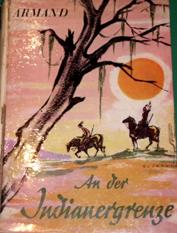 Vorderes Einbandbild in Armand: an der Indianergrenze Hirundo-Jugendbuch der 1950er Jahre; siehe auf unserer Seite: Wildwest-Abenteuer ... |