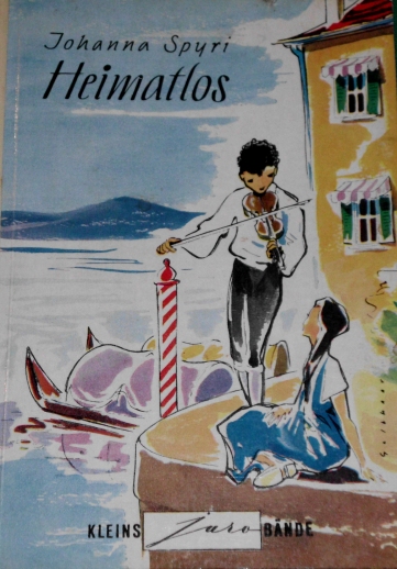 Vorderes Einbandbild in Johanna Sypri: Heimatlos Ausgabe der Kleins Juro Bände um 1955; siehe auf unserer Seite: Kinderbuchreihen - Kleins Jugendbände |