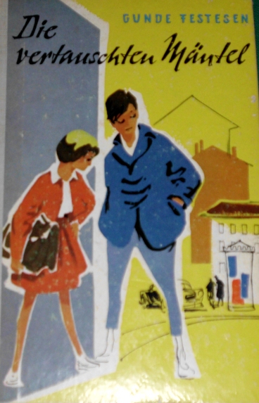 Vorderes Einbandbild in Gunde Festesen: Die vertauschten Mäntel Ausgabe von 1964; siehe auf unserer Seite: Ausgaben für Jungen und Mädchen |