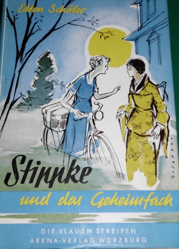 Vorderes Einbandbild in Ellen Schöler: Stippke und das Geheimfach Arena Verlag, Würzburg; Ausgabe um 1960; siehe auf unserer Seite: Ausgaben für Mädchen |