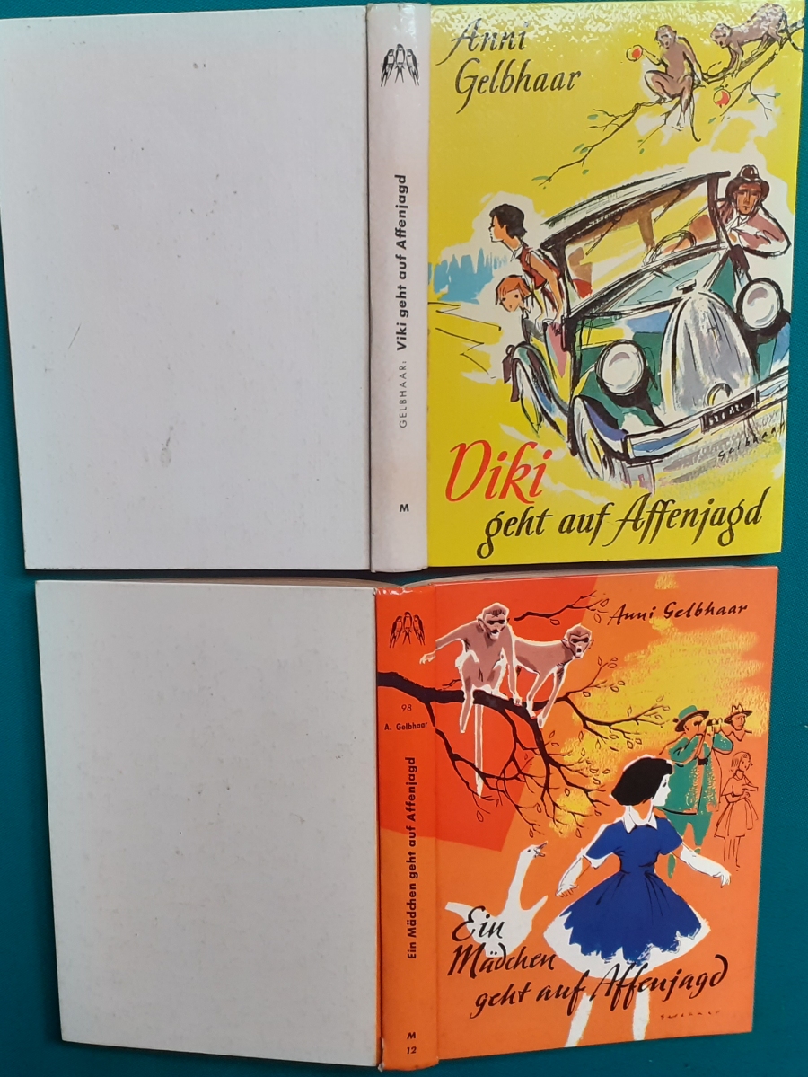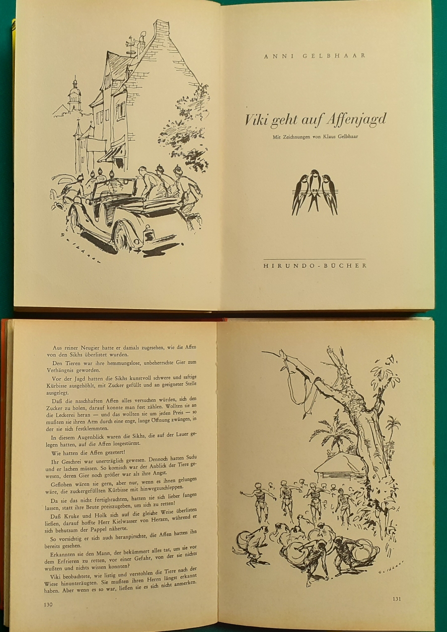 Vorderes Einbandbild in Anni Gelbhaar: Viki geht auf Affenjagd Hirundo-Jugendbuch der 1950er Jahre siehe oben auf dieser Seite |