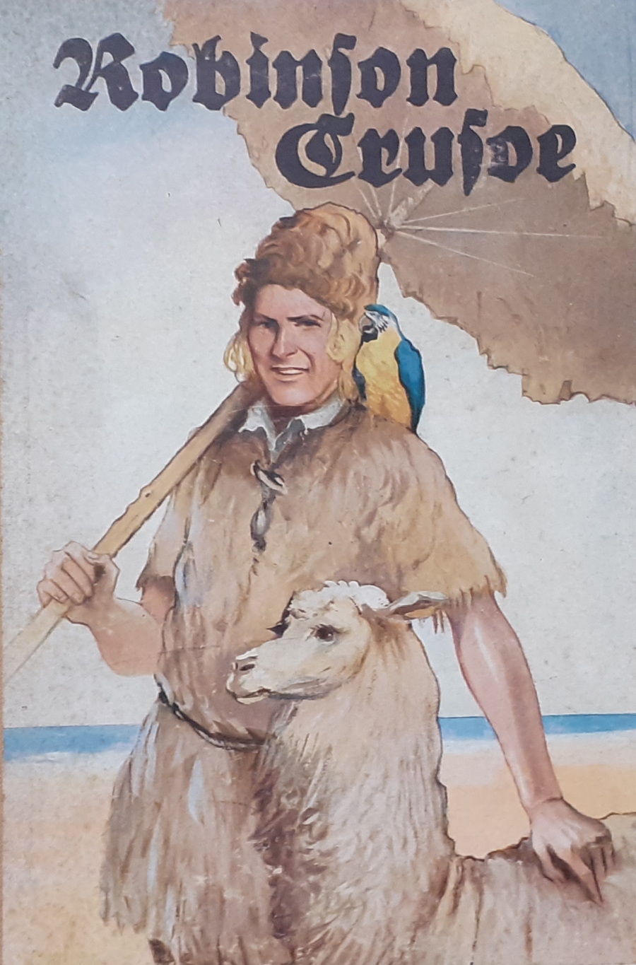 Einband-Illustration in Daniel Defoe: Robinson Crusoe;