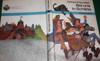 Vorderes Einbandbild in Otfried Preussler: Bei uns in Schilda Ausgabe im Thienemanns Verlag um 1980; siehe auf unserer Seite: Ausgaben von Otfried Preussler ... |