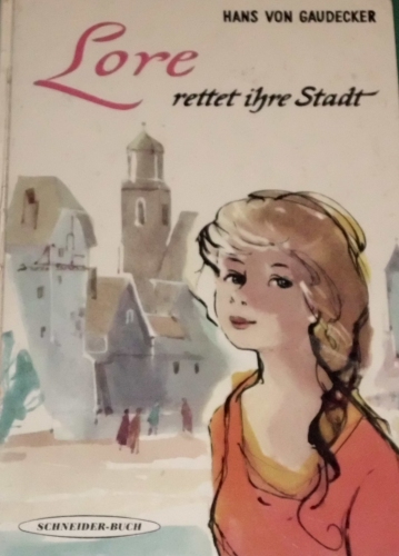 Vorderes Einbandbild in Hans von Gaudecker: Lore rettet ihre Stadt; Ausgabe um 1960 im Schneiderverlag; siehe auf unserer Seite: Kinderbücher - Schneider-Lackausgaben der 1950er bis 1990er Jahre diverse Bücher |