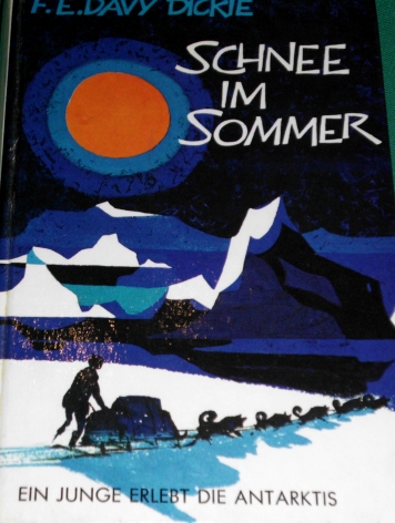 Vorderes Einbandbild in F.E. Davy Dickie: Schnee im Sommer Ausgabe im Boje-Verlag von 1970; siehe auf unserer Seite: Boje-Jugendbücher - Serien der 1950er bis 1990er Jahre |