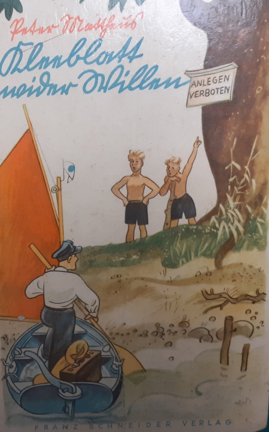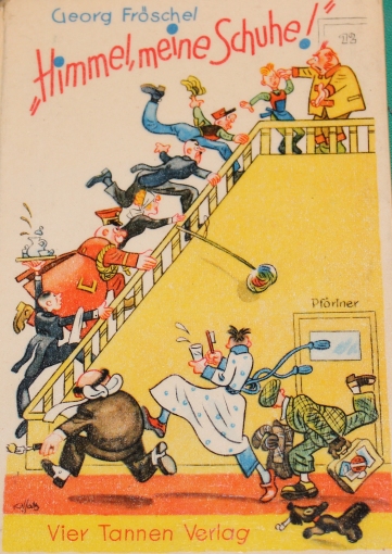 angefertigt: Vorderes Einbandbild in Georg Fröschl: Himmel - meine Schuhe! Ausgabe um 1958; siehe auf unserer Seite: Schneider-Lackausgaben der 1950er bis 1990er Jahre |