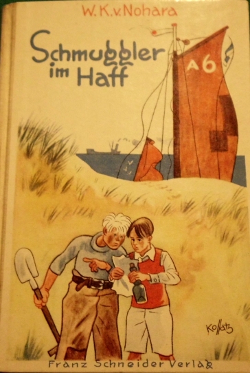 Vorderes Einbandbild in Nohara: Schmuggler im Haff Ausgabe um 1935; siehe auf unserer Seite: Schneider-Jugendbuchausgaben der 1920er und 1930er Jahre | Vorderes Einbandbild in Nohara: Das Geheimnis der Pirateninsel Ausgabe der frühen 1950er Jahre; siehe auf unserer Seite: Erste Schneider-Taschenbuchausgaben der frühen 1950er Jahre |