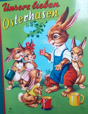 Vorderes Einbandbild in: Unsere lieben Osterhasen Oster-Bilderbuch im Pestalozzi-Verlag von Anfang der 1960er Jahre; siehe auf unserer Seite: Osterbilderbücher |
