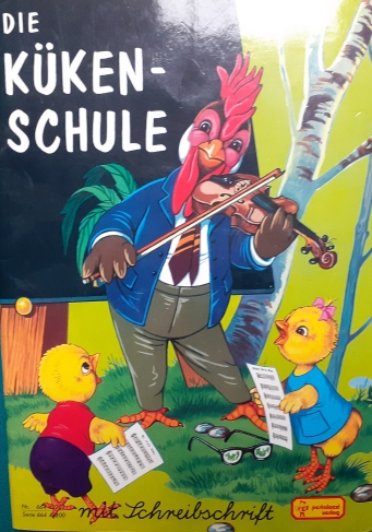 Vorderes Einbandbild in: Die Kükenschule Schreibschriftbilderbuch um 1965; siehe auf unserer Seite: Schreibschriftbilderbücher |