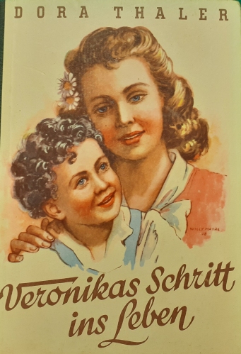 Vorderes Einbandbild in Dora Thaler: Veronikas Schritt ins Leben Ausgabe von 1948 im Breitschopf Verlag; siehe auf unserer Seite: Bücher von Dora Thaler |