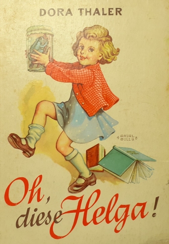 Vorderes Einbandbild in Dora Thaler: Oh, diese Helga! Ausgabe von 1949 im Matzner Verlag; siehe auf unserer Seite: Bücher von Dora Thaler |
