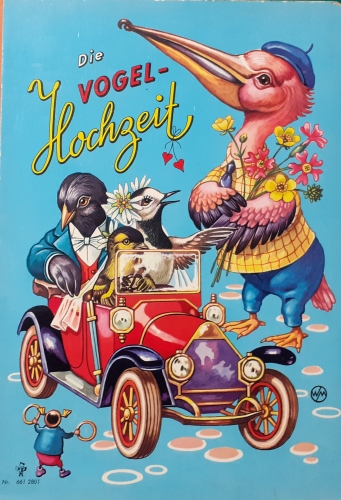 Vorderes Einbandbild in: Die Vogelhochzeit Tierbilderbuch um Pestalozzi Verlag um 1965; siehe auf unserer Seite: Tierbilderbücher |