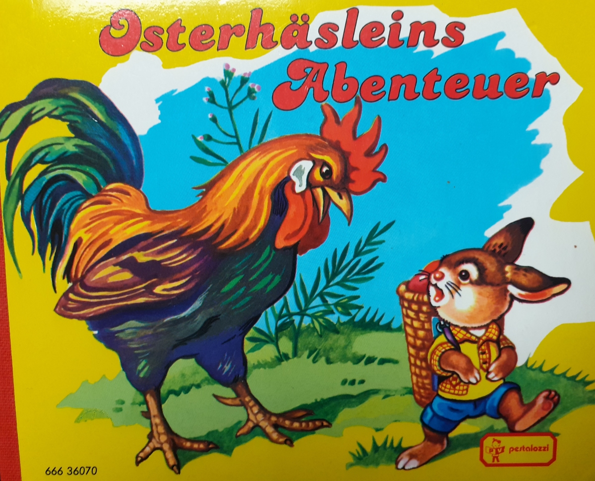 Vorderes Einbandbild in: Osterhäsleins Abenteuer Oster-Bilderbuch im Pestalozzi-Verlag von 1988; siehe auf unserer Seite: Osterbilderbücher |