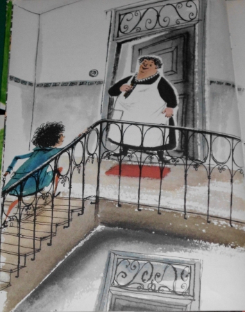 Textillustration in: Ist die schwarze Köchin da ...; Domino-Jugendbuch von 1975, siehe auf unserer Seite: Liederbücher für Kinder ... |