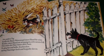 Innen-Illustration in Eva Marder: Der Hasentiger Buchgemeinschaftsausgabe um 1974; siehe auf unserer Seite: Tierbilderbücher |