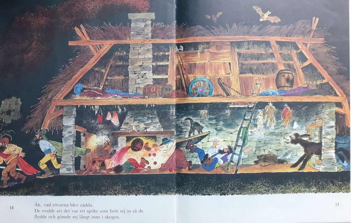 Innen-Illustration in Stadsmusikanterna (Märchen nach den Brüdern