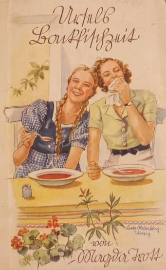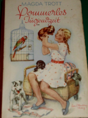 Vorderes Einbandbild in Magda Trott: Pommerles Jugendzeit Pommerle-Mädchenbuchreihe der 1930er Jahre im Paul Franke Verlag; siehe auf unserer Seite: Ausgaben von Magda Trott |