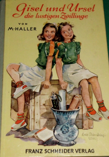 Vorderes Einbandbild in Margarete Haller: Gisel und Ursel - Sammelband Gisel und Ursel-Mädchenbuchreihe der 1950er Jahre im Schneiderverlag; siehe auf unserer Seite: Ausgaben von Margarete Haller |