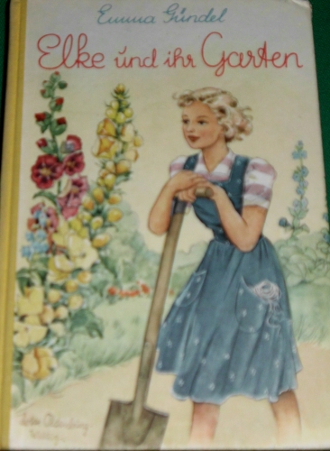 Vorderes Einbandbild in Emma Gündel: Elke und ihr Garten Elke-Mädchenbuchreihe der 1950er Jahre im Boje-Verlag; siehe auf unserer Seite: Ausgaben von Emma Gündel |