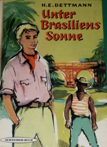 Vorderes Einbandbild in H.E. Dettmann: Unter Brasiliens Sonne Schneiderbuch um 1960; siehe auf unserer Seite: Kinderbücher – Schneider – Abenteuerbücher der 1950er bis 1990er Jahre |