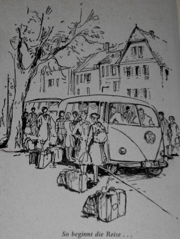Vorderes Einbandbild in Rolf Ulrici: Sechszehn Mädchen auf großer Fahrt; Ausgabe um 1960; siehe auf unserer Seite: Kinderbücher - Ausgaben von Rolf Ulrici |
