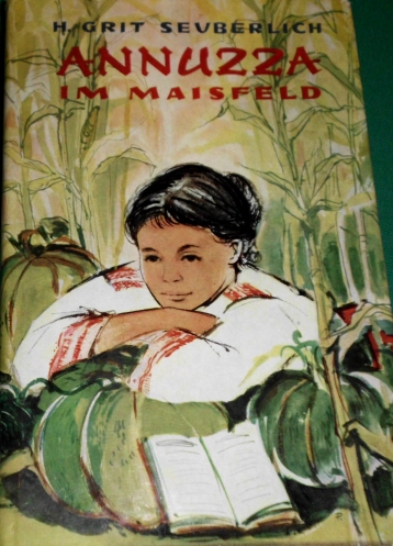 Vorderes Einbandbild in H. Grit Seuberlich: Annuzza im Maisfeld Ausgabe von 1958 im Ensslin Verlag, Reutlingen; siehe auf unserer Seite: Kinderbücher - Kinderleben in fremden Ländern |