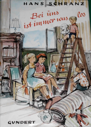 Vorderes Einbandbild in Hans Schranz: Bei uns ist immer was los Ausgabe um 1960 im Gundert Verlag, siehe auf unserer Seite: Kinderbücher - Ausgaben für Jungen und Mädchen nach 1945 ... |