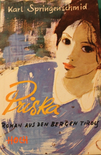 Vorderes Einbandbild in Karl Springenschmid: Priska Erstausgabe von 1961 aus dem Hoch Verlag; siehe auf unserer Seite: Kinderbücher - Abenteuerbände aus den Bergen |