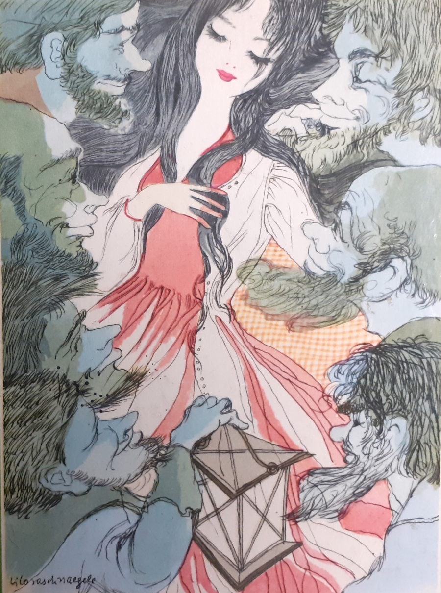 Stil: Bereits unmittelbar nach Kriegsende setzte Lilo Rasch-Naegele ihre zeichnerischen Erfolge der Vorkriegszeit in ihrem Atelier fort, indem sie für zahlreiche bekannte Marken wie ARAL, Schiesser und Elbeo, für die Stern-Anzeigenabteilung und für diverse Verlage (vor allem Boje, Kurt Desch, Wilhelm Goldmann, Albert Müller, Carl Überreuther und Ullstein-Propyläen) sowie für die Stuttgarter Zeitung arbeitete. Quelle: Wikipedia; Version vom 10.11.2013 Signatur der Illustratorin mit vollem Namen auf einigen wenigen Werken |