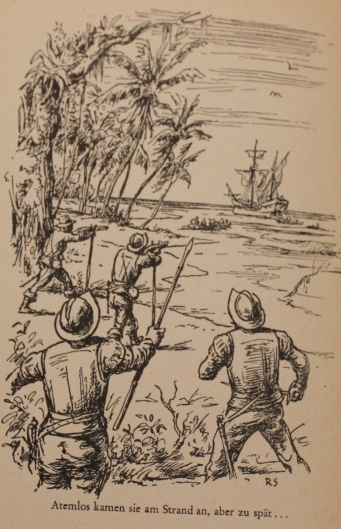 Vorderes Einbandbild in Frederick Marryat: Sigismund Rüstig Ausgabe im Union Verlag von 1950; siehe auf unserer Seite: Ausgaben von Frederick Marryat ... |