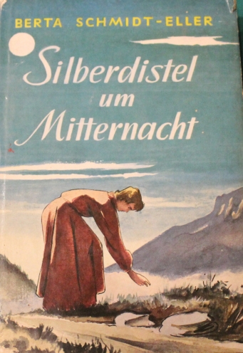 Vorderes Einbandbild in Berta Schmidt-Eller: Silberdistel um Mitternacht Ausgabe von 1958 im Verlag Sonne und Schild; siehe auf unserer Seite: Ausgaben für Jungen und Mädchen |