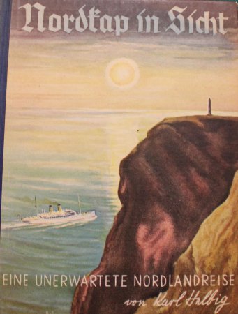 Titel-Illustration in Karl Helbig: Nordkap in Sicht Ausgabe von 1938 im Gundert Verlag; siehe auf unserer Seite: Abenteuerbände für Jungen und Mädchen |