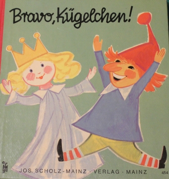 Vorderes Einbandbild in Hanna Schachenmeier: Bravo, Kügelchen! Ausgabe um1960 im J. Scholz-Mainz Verlag; siehe auf unserer Seite: Einzelne Bilderbücher |