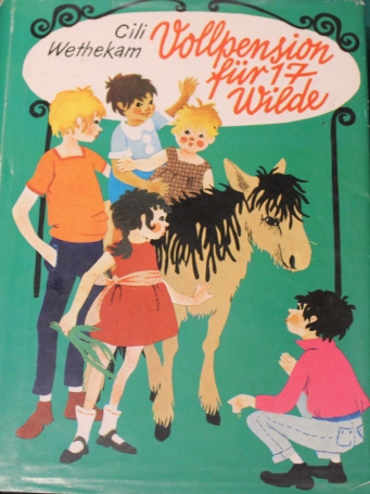 Vorderes Einbandbild in Cili Wethekam: Vollpension für 17 Wilde Ausgabe im Thienemanns Verlag von 1969; siehe auf unserer Seite: Ausgaben von Cili Wethekam ... |