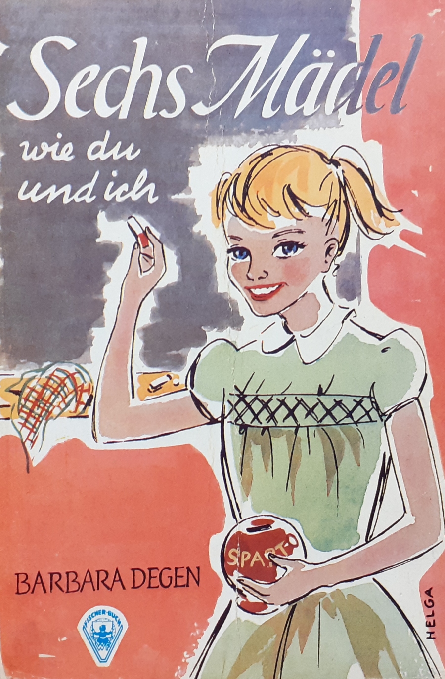 | Kinderbücher - Ausgaben von Martha Schlinkert: Vorderes Einbandbild: Nur Mut, Winnie; Peb-Jugendbuch von 1966 | Kinderbücher – Ausgaben von Barbara Degen Einbandbild in "Sechs Mädel wie du und ich"; Göttinger Jugendbuch um 1952 |