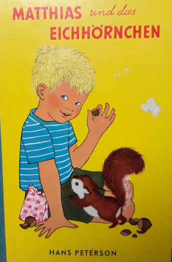 Vorderes Einbandbild in Hans Peterson: Matthias und das Eichhörnchen Ausgabe der Büchergilde Gutenberg von 1961; siehe auf unserer Seite: Ausgaben von Hans Peterson |