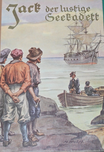 Vorderes Einbandbild in Frederick Marryat: Jack, der lustige Seekadett Ausgabe um 1925; siehe auf unserer Seite: Kinderbücher - Ausgaben von Frederick Marryat |