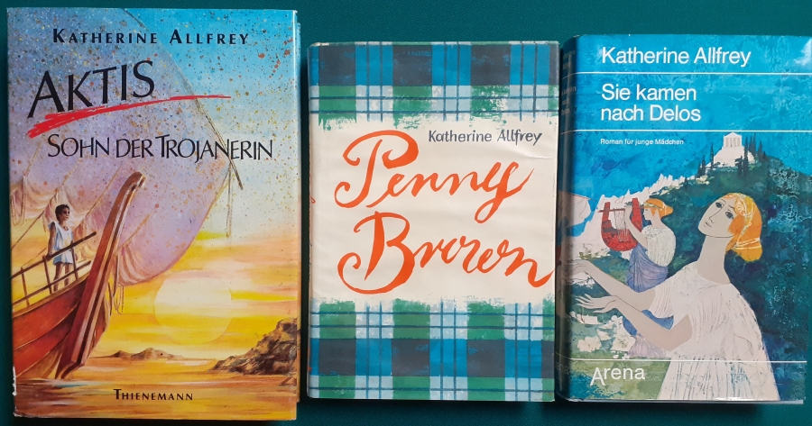 Jugendbuchautorin. Katherine Allfrey arbeitete als Verkäuferin, Lehrerin und Kindermädchen. Sie verbrachte fünf Jahre in Athen und wanderte dann mit ihrem Mann, einem Engländer, nach Neuseeland aus, wo sie zu schreiben begann. 1949 kehrte sie nach Europa zurück und lebte mit ihrer fünfköpfigen Familie in der Nähe von Bristol. 1988 kam sie nach Deutschland zurück, wo sie ab 1989 in Binzen lebte. Allfrey verarbeitet in ihren Büchern immer wieder Themen aus Geschichte und Mythologie. Für ihre Erzählung „Delphinensommer“ wurde sie 1964 mit dem Deutschen Jugendliteraturpreis ausgezeichnet. Informationen aus wikipedia, Stand: 13.1.2020 |