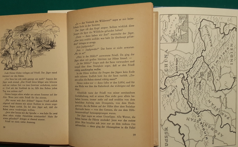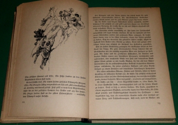 Der Raub des Dunganen Union Verlag, Stuttgart, Erstausgabe von 1941, Illustrationen von Willy Planck, 196 Seiten, Leinenrücken mit sehr festem Hartpappeinband; etwas an den Buchkanten bestoßen; insgesamt recht guter altersgemäßer Zustand, Preis: 8 EUR Hier zur Illustratoren-Galerie mit typischen Arbeiten von Willy Planck |