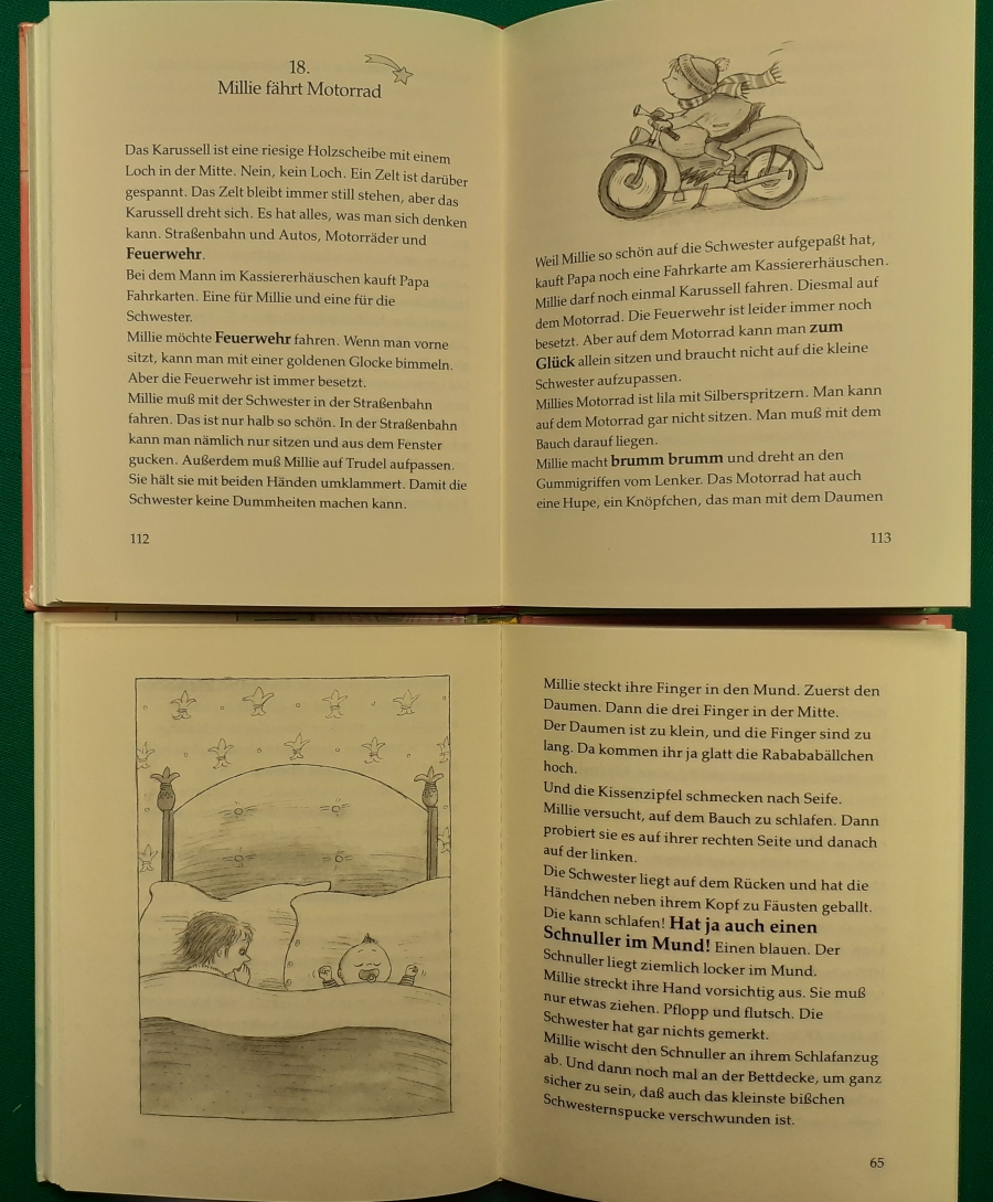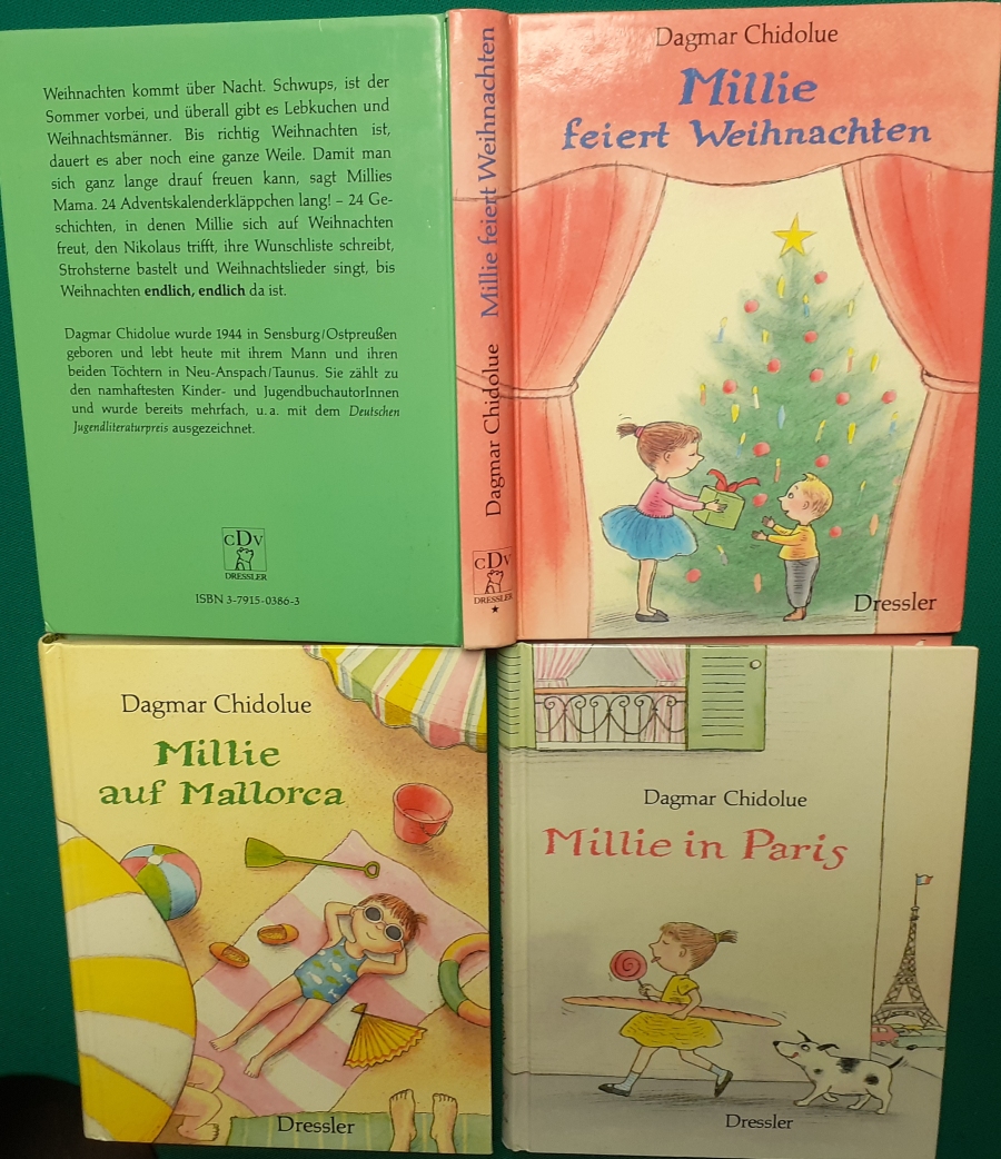 Millie - Bücher Ausgaben jeweils im Cecilie Dressler Verlag Berlin; die Reihe erschien Anfang der 1990er Jahre; Illustrationen von Gitte Spee, jeweils stabile abwaschbare Hardcover Einbände im Format 19 x 15 cm; Druck in Großdruck für Leseanfänger: Millie feiert Weihnachten