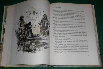 von Eliza und die Seeräuber Illustrationen von Wilhelm Bruns, Erich Schmidt Verlag, Berlin u.a., Erstausgabe von 1953, 184 Seiten, Leinenrücken mit sehr festem Hartpappeinband; sehr guter altersgemäßer Zustand, Preis: 9 EUR |