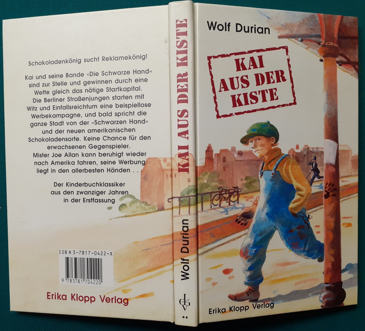 Wolf Durian (eigentlich Wolfgang Walter Bechtle, geb. am 19. Oktober 1892 in Stuttgart, gest. am 8. November 1969 in Berlin) war ein deutscher Journalist, Übersetzer und Jugendbuchautor. Nach dem Abitur reiste Durian nach Amerika und arbeitete als Tellerwäscher, Holzfäller, Gärtner, Cowboy und Postreiter. Danach studierte er Germanistik und Zoologie. Anfang der 1920er Jahre war er Redakteur der populärwissenschaftlichen Zeitschrift Kosmos in Stuttgart, danach ab 1924 in Berlin Chefredakteur der Kinderzeitschrift Der heitere Fridolin, einer Halbmonatsschrift für „Sport, Spiel, Spaß und Abenteuer“, die von 1921 bis 1928 im Ullstein Verlag erschien. Nach 1945 war Durian Mitarbeiter der Täglichen Rundschau und der Berliner Zeitung, wo er im Feuilleton unter dem Pseudonym Fridolin schrieb. Er verfasste zahlreiche Kinder- und Jugendbücher, die in mehrere Sprachen übersetzt wurden und die seine Liebe zur Natur, zu den Tieren und zu fremden Ländern zum Inhalt haben. Sein wohl größter Erfolg war das 1926 erschienene Jugendbuch Kai aus der Kiste, das bis heute zahlreiche Auflagen erlebt hat. Zuvor war es 1924 als Fortsetzungsroman für die Zeitschrift Der heitere Fridolin erschienen. 1927 lehnte der Prüfungsausschuss der Jugendschriftenwarte das Buch wegen Darstellung des Amerikanismus ab. Unter der Naziherrschaft wurde es aus gleichem Grund (proamerikanisch) verboten. Informationen aus wikipedia am 6.11.2013 |