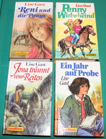 Lise Gast (geb. 2.1.1908 in Leipzig; gest. 26.9. 1988 in Lorch), bürgerlich Elisabeth Richter, geborene Gast, war eine deutsche Autorin von Kinder- und Jugendliteratur. Sie machte eine Ausbildung zur landwirtschaftlichen Lehrerin und heiratete 1933 Georg Richter. Aus der Ehe gingen acht Kinder hervor. 1936 erschien ihr erstes Buch Tapfere junge Susanne, 1939 folgte Junge Mutter Randi, das erfolgreich wurde. Sie wählte dazu, entsprechend ihrem Geburtsnamen, das Pseudonym Lise Gast, unter dem sie schon früher Geschichten veröffentlicht hatte. Lise Gast floh am 12. Februar 1945 mit ihren Kindern aus Schlesien in die an Dresden grenzende Stadt Radebeul. Ende März floh sie weiter nach Wedderstedt nahe Quedlinburg, wo sie drei Jahre lang als Tagelöhnerin arbeitete. Dort wurde auch ihr achtes Kind, Christoph, geboren. Zwei Wochen später erfuhr sie vom Tod ihres Mannes in Kriegsgefangenschaft. Im November 1948 floh sie mit Hilfe Hans Lißners über die Zonengrenze nach Hardehausen in Westfalen. Dort widmete sie sich ganz der Schriftstellerei. Um in der Nähe ihrer in Stuttgart ansässigen Verlage zu wohnen, kaufte sie sich 1955 eine ehemalige Arbeitsdienstbaracke bei Lorch (Württemberg), wo sie einen Ponyhof gründete. Das Leben auf diesem Hof, auf dem Lise Gast Shetlandponys und Islandpferde züchtete, thematisierte sie in weiteren Büchern. Daneben war sie als Kolumnistin tätig. Insgesamt verfasste Lise Gast etwa 120 Bücher. Zwei Wochen vor ihrem Tod hatte sie noch aus ihrer letzten Buchveröffentlichung Nichts bleibt, mein Herz, und alles ist von Dauer in Schwäbisch Gmünd gelesen. Bestattet wurde Lise Gast in Lorch. Ihre Tochter Marianne Späh ist ebenfalls als Autorin tätig und gab 2007 die Lebenserinnerungen ihrer Mutter So war es. Gut, dass es so war! Lise Gast erzählt Geschichten aus ihrem Leben heraus. Informationen aus Wikipedia am 18.5.2013 |