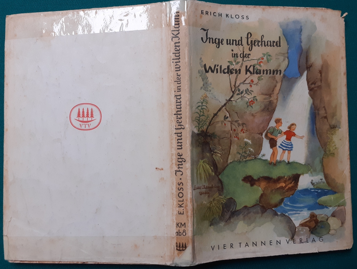 Die Ausgabe des Buches Erich Kloss: Inge und Gerhard in der wilden Klamm Ausgabe von 1949; 80 Seiten, Illustrationen von Krause-Carus; fester Hartpappeinband mit dem seltenen Schutzumschlag; Buchkanten bestoßen; Rücken oben etwas beschädigt; Schutzumschlag fleckig und etwas beschädigt; insgesamt befriedigender altersgemäßer Zustand Preis: 7 EUR |