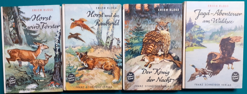 Erich Kloss, auch Erich Kloß wurde am 9. März 1889 in Eichhorst in Niederbarnim geboren; er starb am 15. Oktober 1964 in Berlin-Dahlem. Der Lehrer aus der Mark Brandenburg verarbeitete sein Wissen über die Flora und Fauna von Feld, Wald und Wiese und ihrer Bewohner in Sachbüchern, aber auch in Tierromanen und Kinder- und Jugendbüchern. Neben der Veröffentlichung von Schul- und Fachbüchern sowie den Geschichten aus Wald und Flur war er einige Jahre (bis 1934) für deutsche Rundfunksender als Erzähler von Tiergeschichten bekannt. Häufig verwischt in seinen mitreißend geschriebenen Büchern die Grenze zwischen Sachbuch und Belletristik. Die Kinder- und Jugendbücher von Erich Kloss erschienen zumeist im Franz Schneider Verlag. Titel wie Im tiefen Forst, So schön ist’s nur im Försterhaus waren in den 1950er bis 1970er Jahren beliebte Werke. |