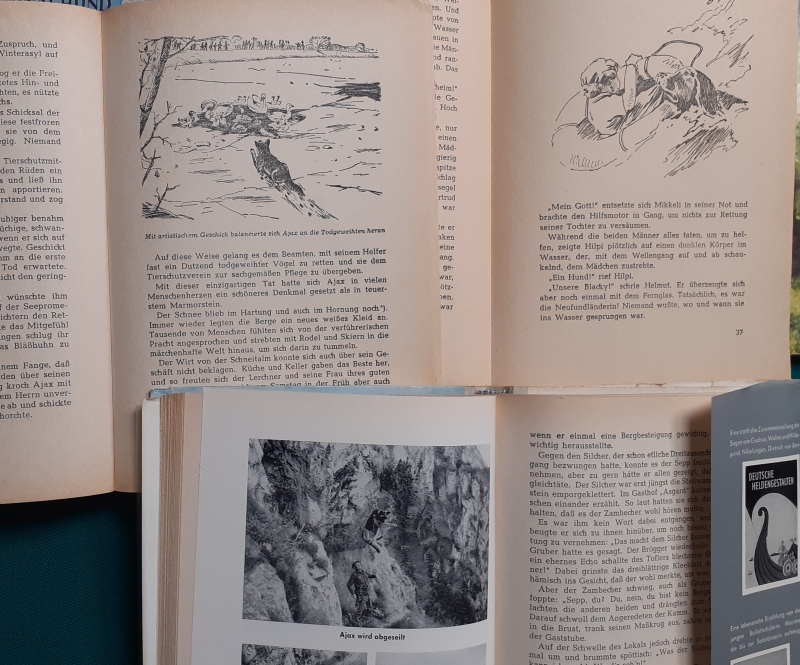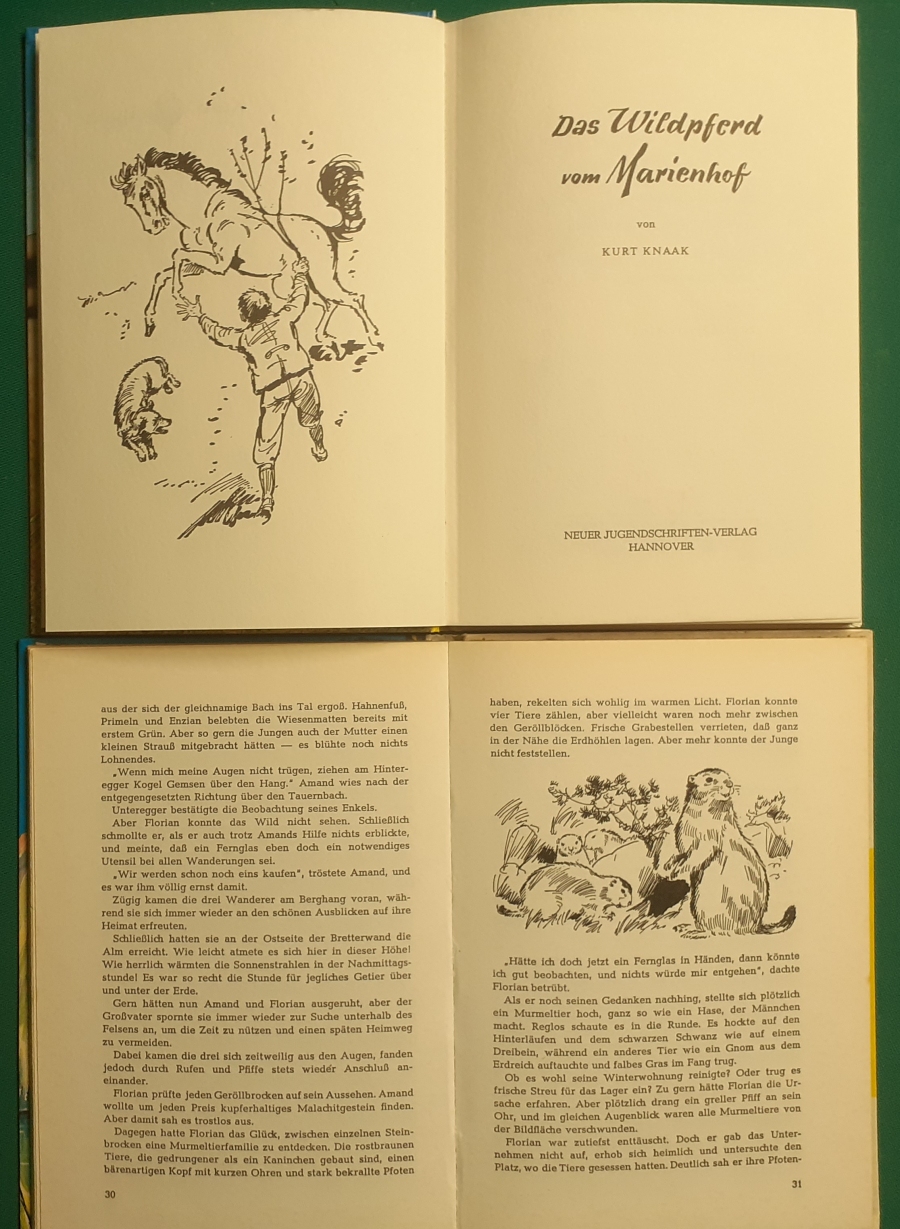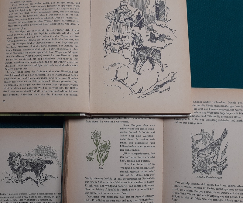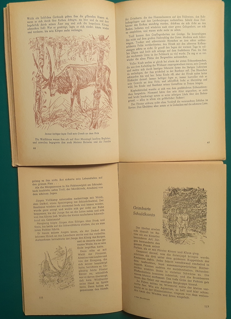 Ein Jahr im Forst Ausgabe von 1974, 250 Seiten, Illustrationen von Anton M. Kolnberger, rundum lackierter fester Hartpappeinband; altersgemäßer guter Zustand Preis: 7 EUR |