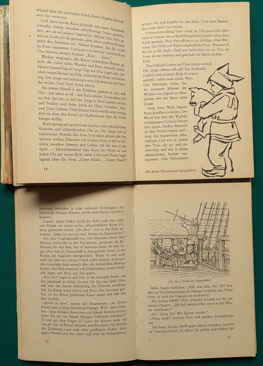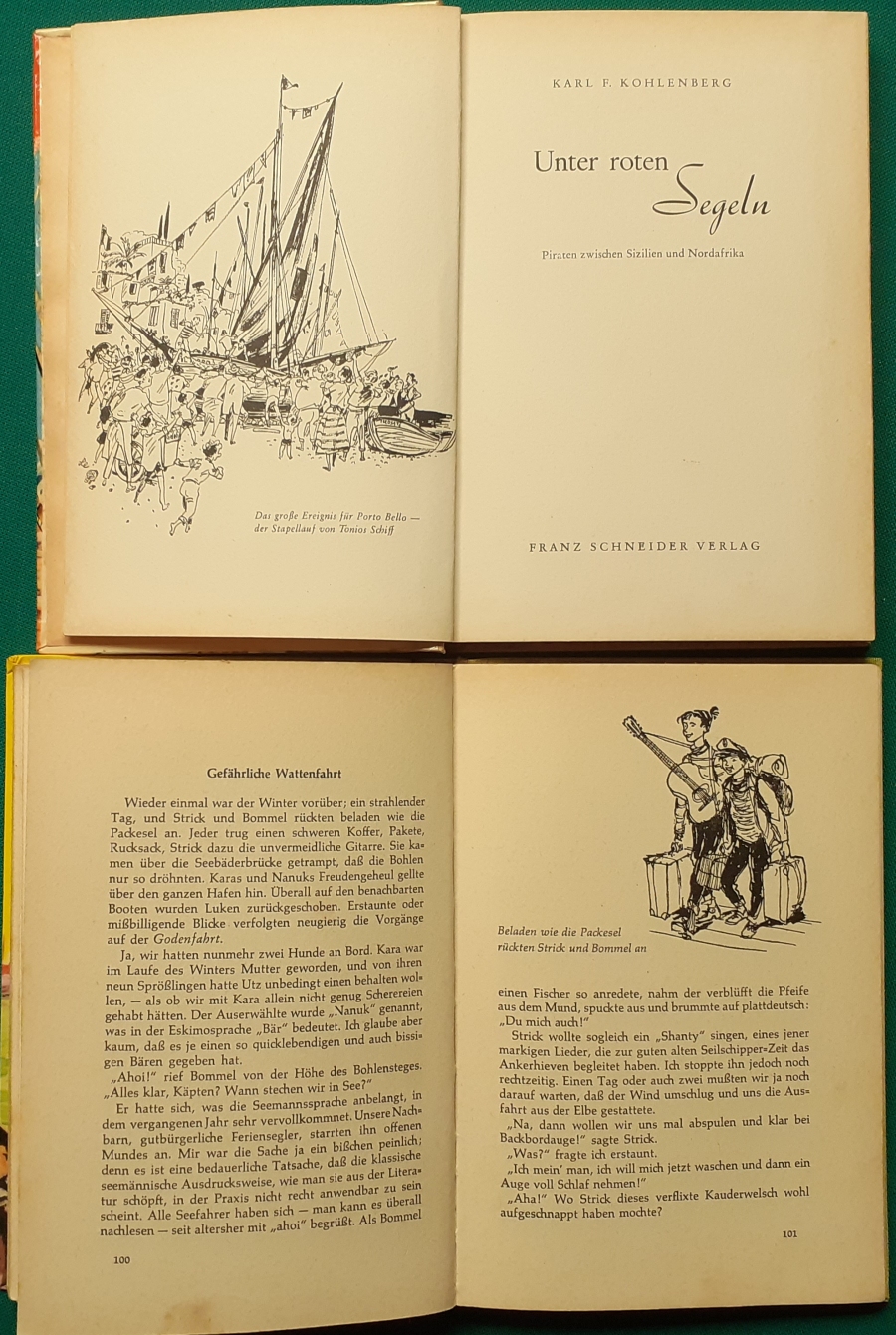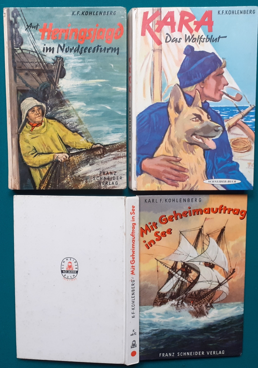 Schneider-Jugendbuch-Ausgaben aus den 1950er Jahren: Seefahrtsabenteuer von Auf Heringsjagd im Nordseesturm Kara, das Wolfsblut